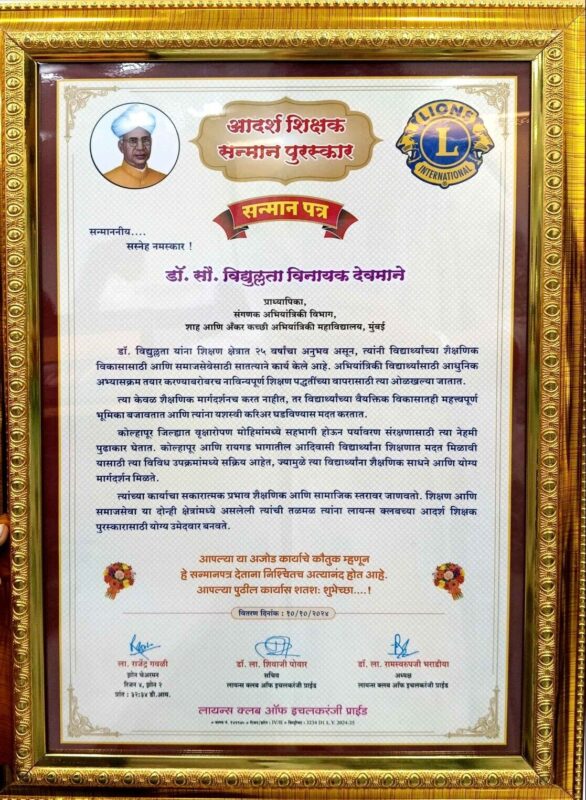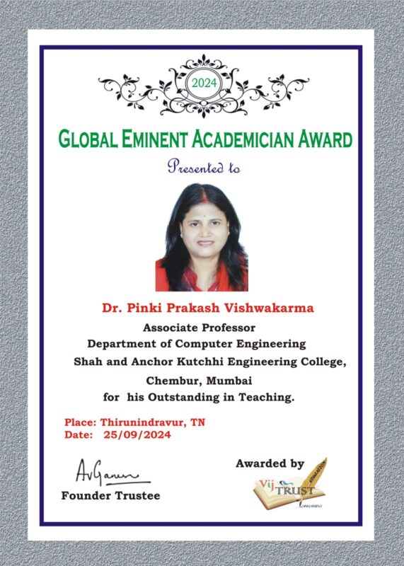 Ms. Deepika P. Patil, faculty member of the Department of Electronics and Computer Science at Shah and Anchor Kutchhi Engineering College, successfully participated in the IUCEE International Educator Certification Program (IIECP) – Spring 2025, organized by the Indo Universal Collaboration for Engineering Education (IUCEE). The program aimed to enhance teaching effectiveness through innovative, learner-centric, and outcome-based educational practices. Through active participation and reflective learning, Ms. Patil showcased her dedication to academic excellence and continuous professional development in engineering education.