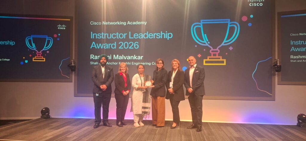 The Department is proud to share that Dr. Rashmi Malvankar was conferred the Instructor Leadership Award 2026 at the Cisco Networking Academy India Leadership Summit 2026, held on 18th February 2026 at Cisco Systems, Bangalore. The award recognizes her leadership, dedication to academic excellence, and significant contributions to enhancing student learning and engagement through the Cisco Networking Academy initiatives.