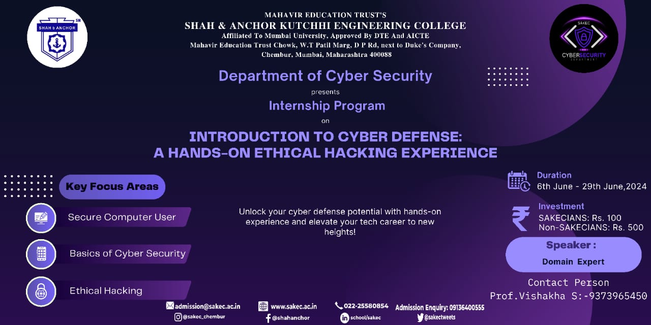 Department of Cyber Security at Shah & Anchor Kutchhi Engineering College Presents !!!!!