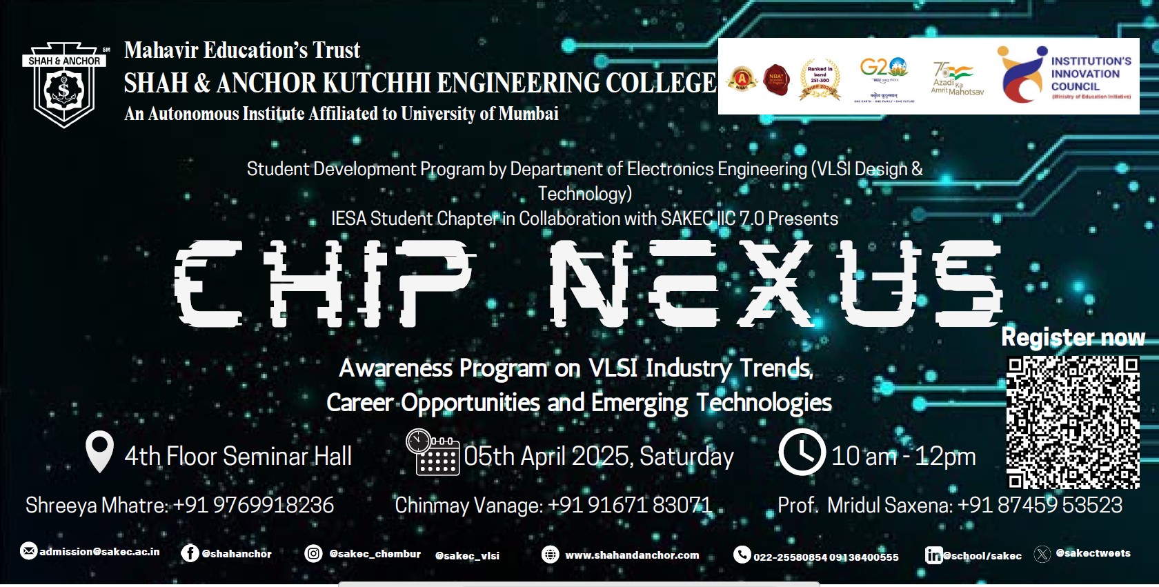 We are delighted to share that our Department of Electronics Engineering (VLSI Design & Technology) is organizing “Silicon Summit – An Academia-Industry Conclave on 13th November 2025 at SAKEC.