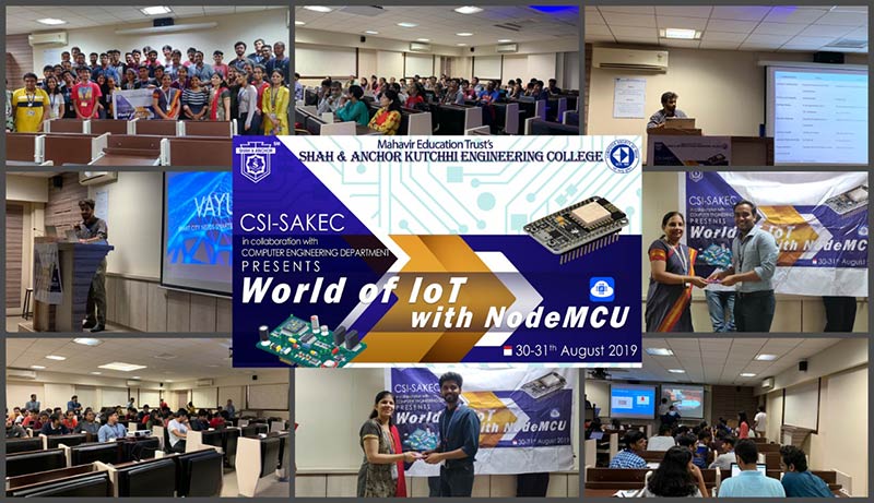There were many group building and fun activities organized.CSI-SAKEC in collaboration with Department of Computer Engineering organized a 2-day workshop on “World of IoT with NodeMCU” on 30th & 31st August, 2019.Bhavin Goswami, Prasanna Limaye, Hiten Chawda& Vineet Patel, students of Third year Computer Engineering SAKEC conducted the event. Topics covered were Introduction to IoT, Basics of NodeMCU, Different applications of NodeMCU, Configuring LEDs with NodeMCU, using different sensors like DHT11, LDRs, IRs & IR-Remote, NodeMCU as a Server & Google Assistant using NodeMCU. The workshop ended with great feedback from students.
