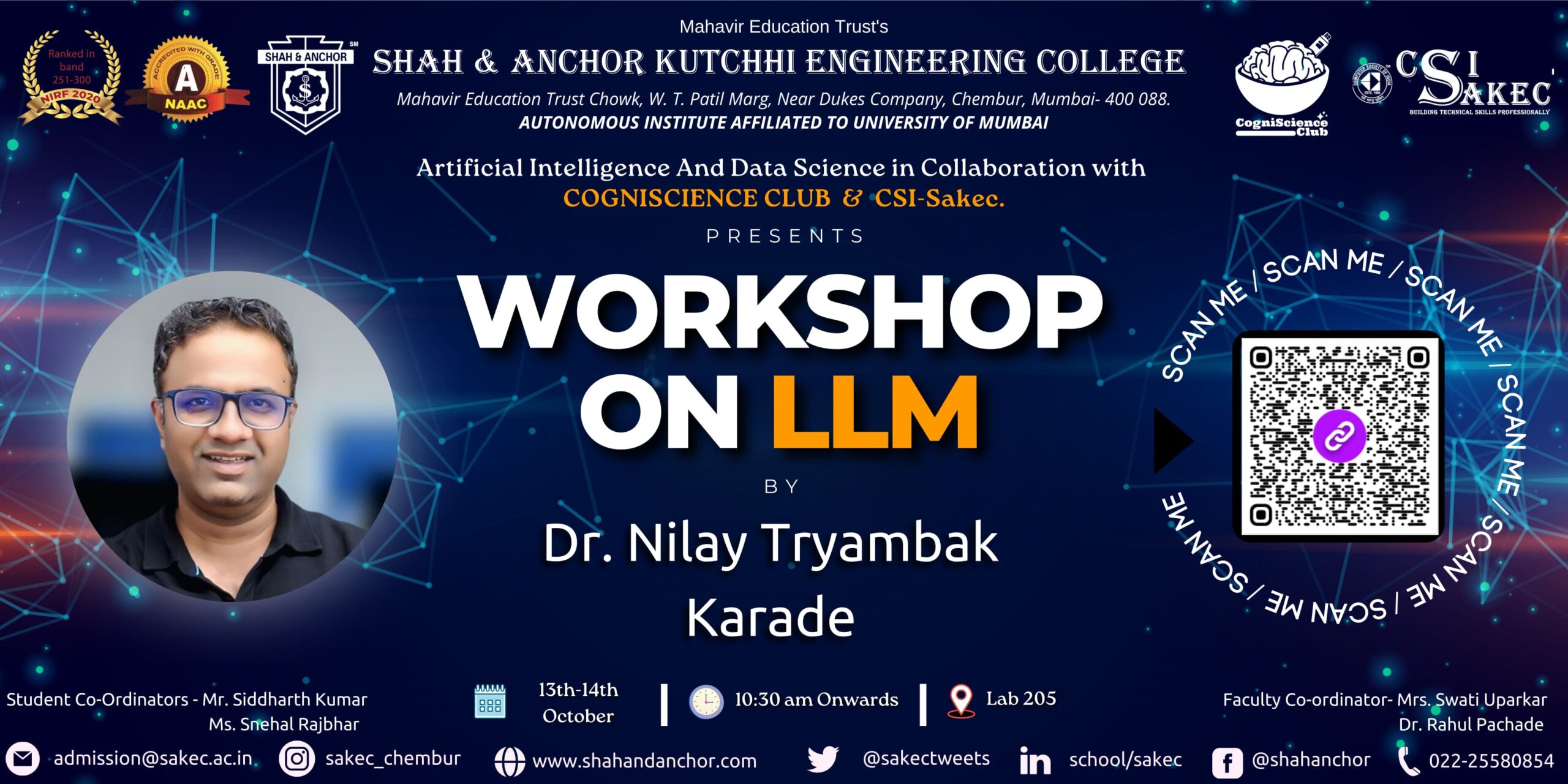 SAKEC AI-DS Department , in collaboration with the Cogniscience Club , is organizing an Interactive Workshop on Large Language Models (LLM) !