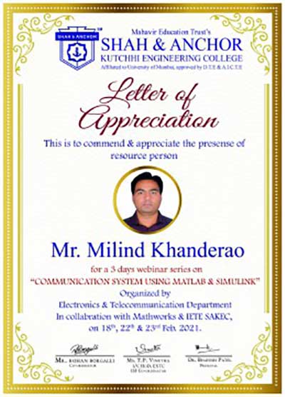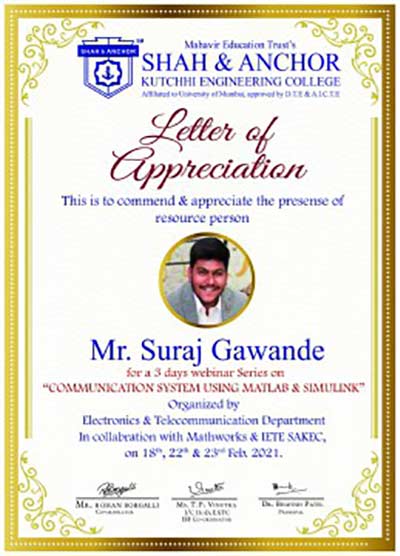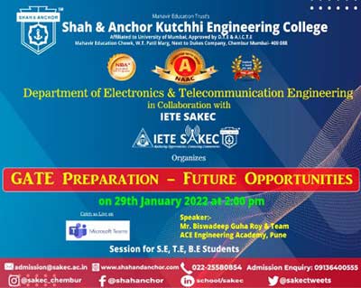 Department of Electronics and Telecommunication Engineering in association with IETE SAKEC organized an Online Webinar, ‘GATE Preparation – Future Opportunities’ on 29 Jan. 2022 at 2.00 Pm.