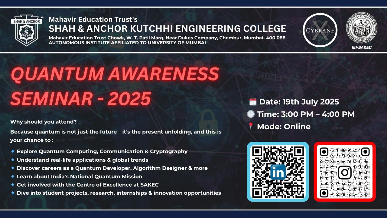 Venue: Lab 215, 2nd Floor, Shah & Anchor Kutchhi Engineering College