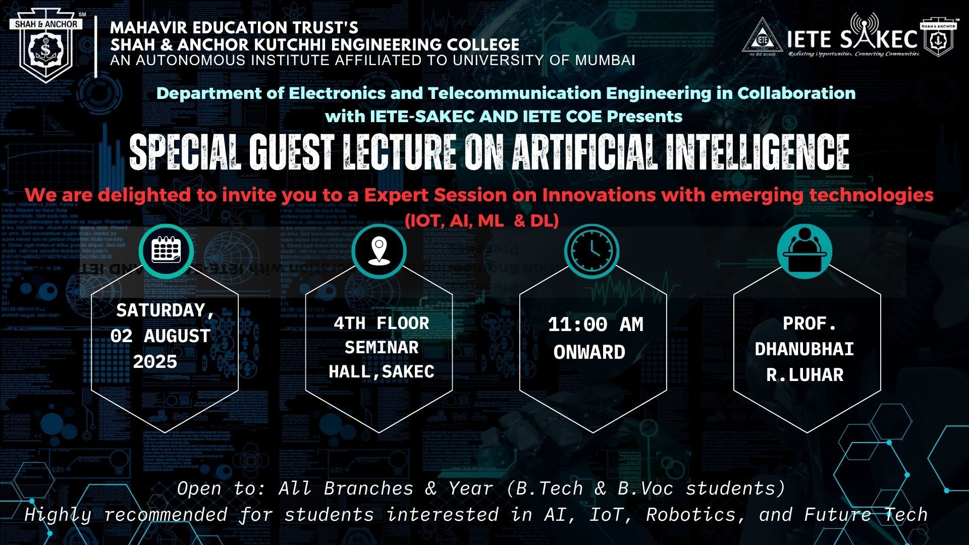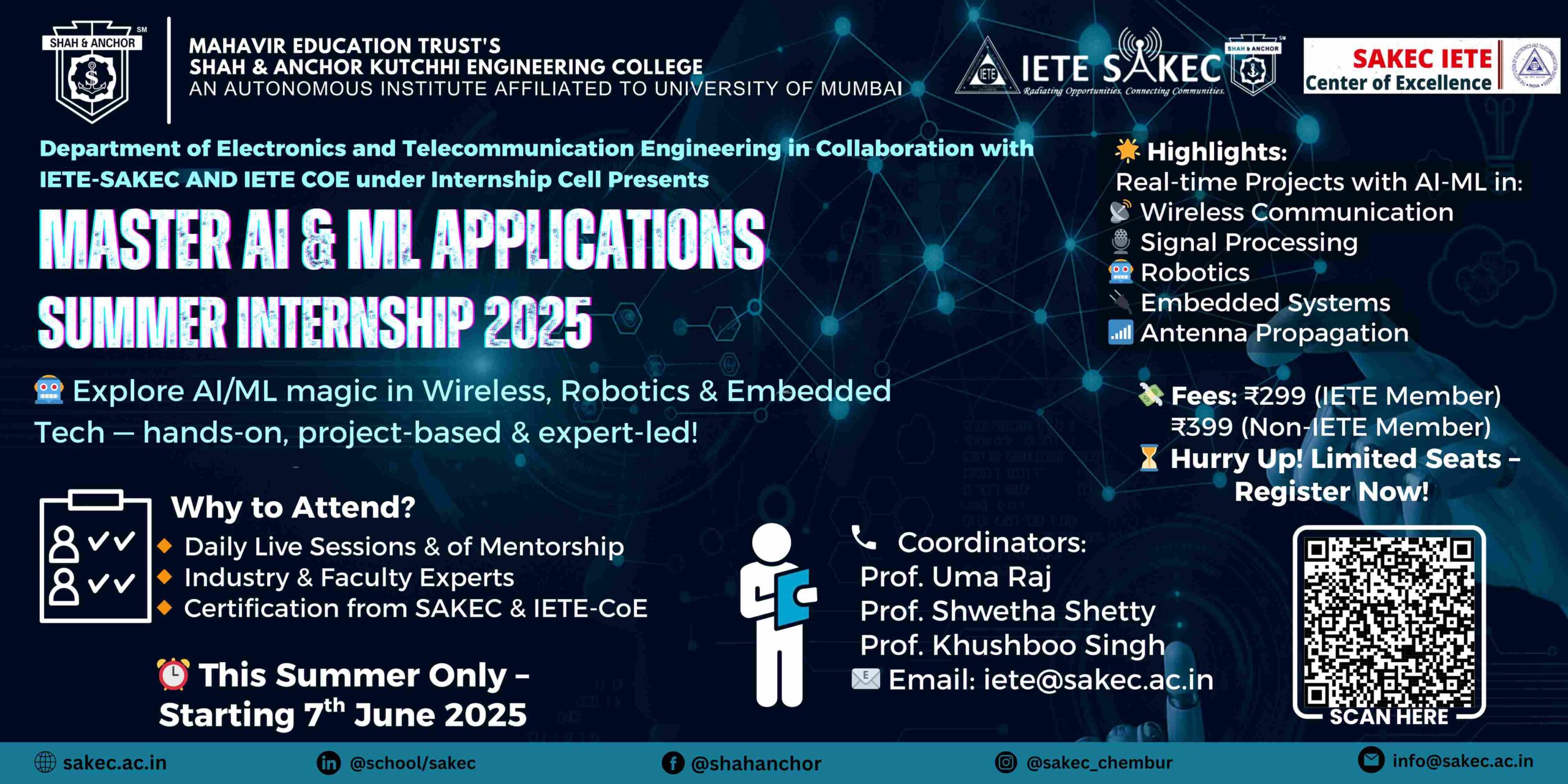 We are delighted to invite you to an AI Expert Session on “Large Language Models (LLM)” organized by IETE SAKEC in collaboration with TLC SAKEC and CogniScience Club