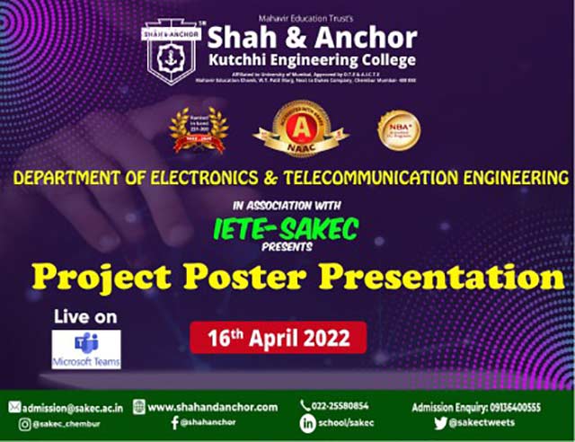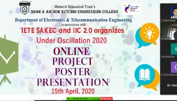 Department of Electronics and Telecommunication Engineering in collaboration with IETE-SAKEC & IIC2.0 SAKEC conducted “Online Project Poster Presentation Competition” under Oscillation 2020 on 📅15/04/2020 on Online platform.