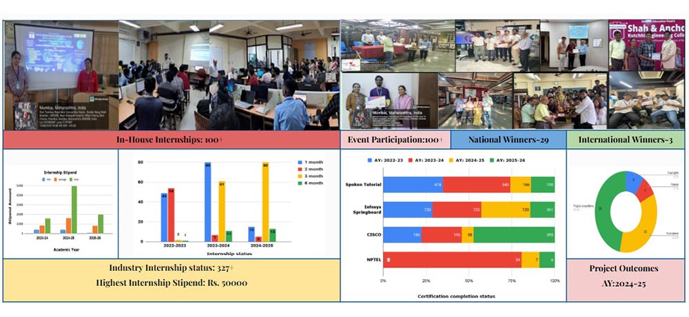By encouraging learner centric approach we motivate our students to pursue internships both within the institution and in the industry, helping them gain valuable hands-on experience. To further enrich their learning, we regularly conduct industry experts and guest lectures, workshops, project competitions and industry certifications such as Cisco, Infosys Springboard, MongoDB, AgentAI and Salesforce aimed at boosting technical and professional skills.