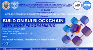 Department of Electronics & Computer Science in collaboration with Computer Engineering Department, IEI student chapter and Web3 Mumbai conducted The MOVE Programming Workshop on the SUI Blockchain successfully at SAKEC.