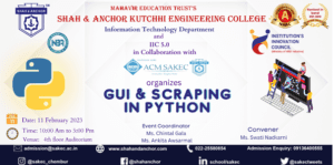 Information Technology Department in collaboration with SAKEC ACM Student Chapter organizes an event on “GUI & Scraping in Python” for SE IT students which will help them to implement mini project in python.