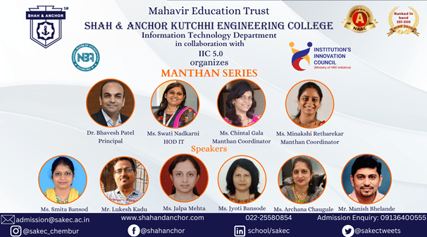The Department of Information Technology in collaboration with IIC 5.0 had organized a session under MANTHAN SERIES. The objective of the MANTHAN SERIES was to benefit the faculties with new concepts and technologies.
