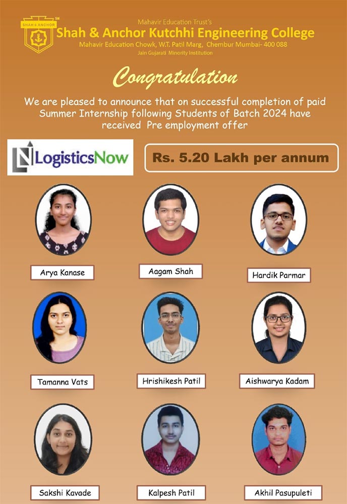 After successful completion of Summer Internship following students of Batch-2025 have received Pre employment offer: